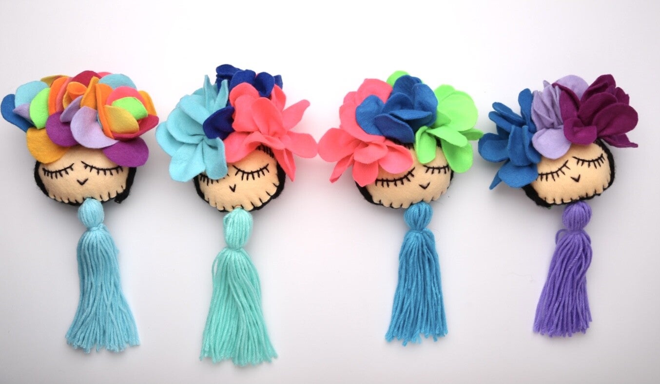 Frida met bloemetjes deze tassels hangers zijn een geweldige accessoire voor je tas, rugzak, strandtas of shopper.