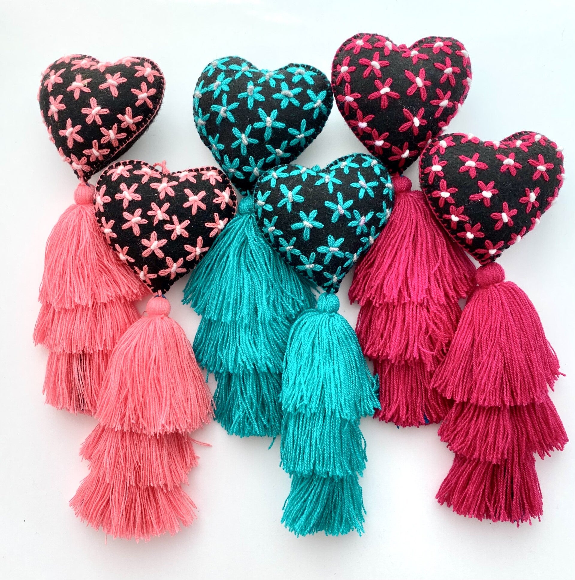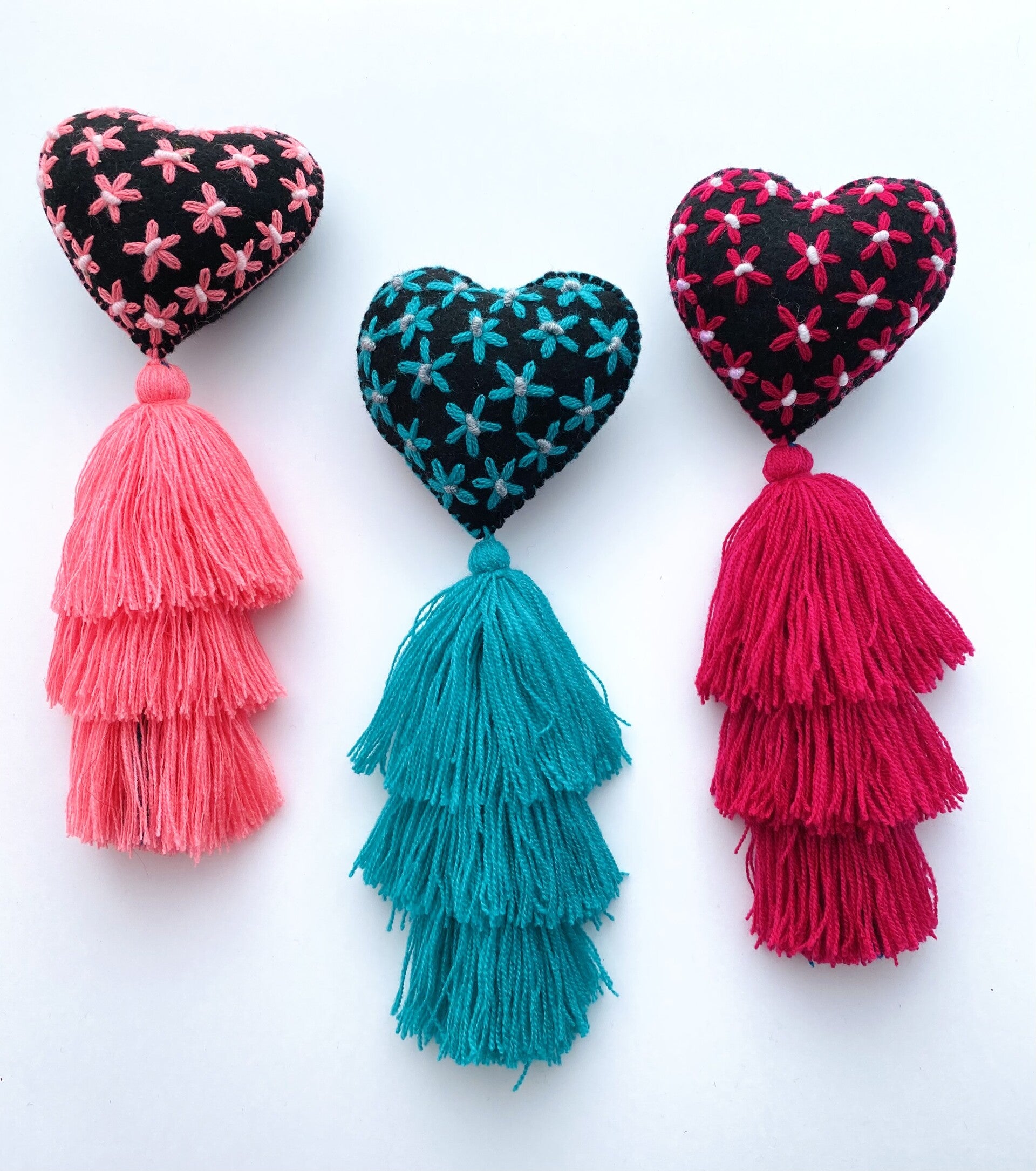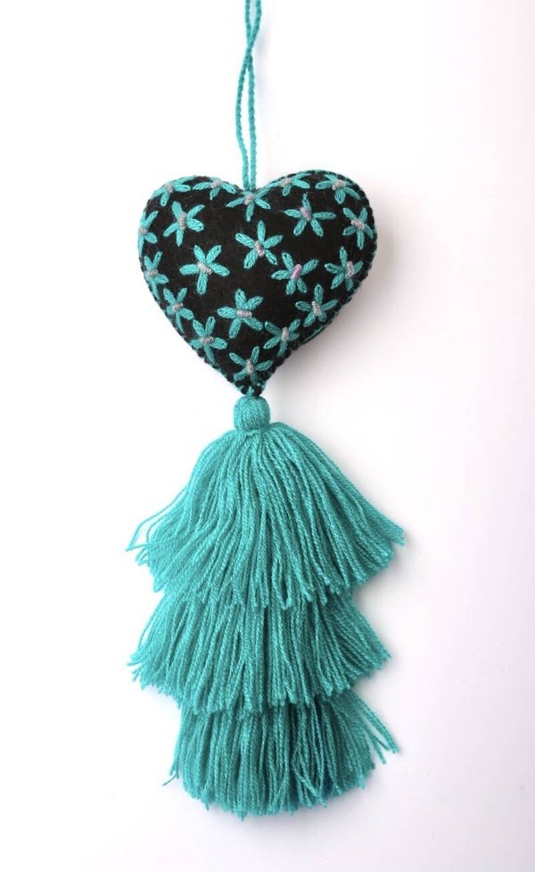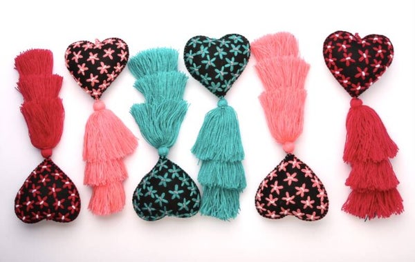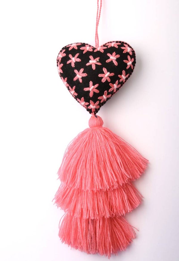 Mooi elegant hartjes geborduurd met sterren en 3 tassels, deze hangers zijn een geweldige accessoire voor je tas, rugzak en decoratie van je kamer.