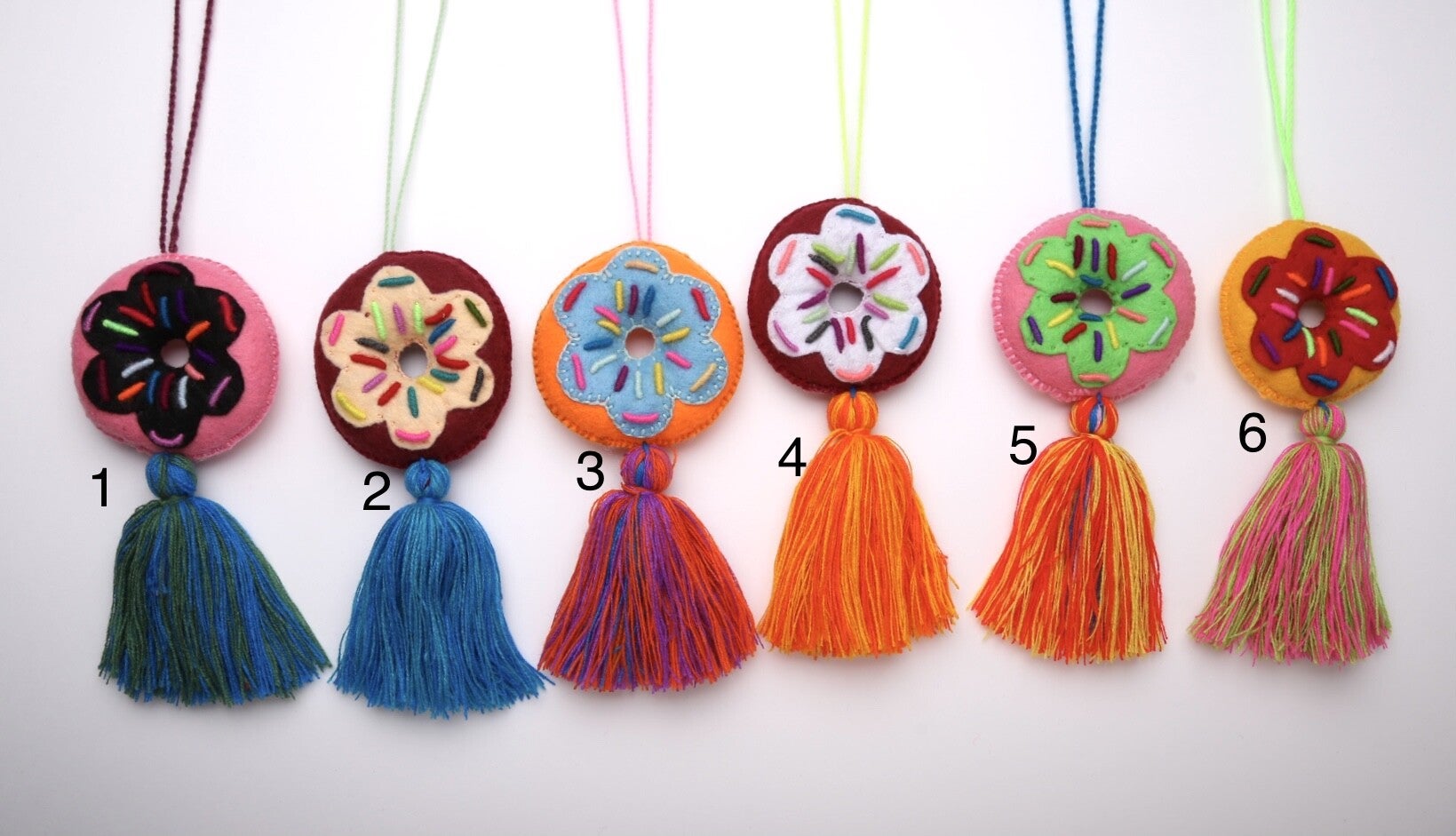 Ben je gek op Donnuts? deze tassels hangers zijn een geweldige accessoire voor je keuken, boodschap tas, rugzak, decoratie van je kamer.