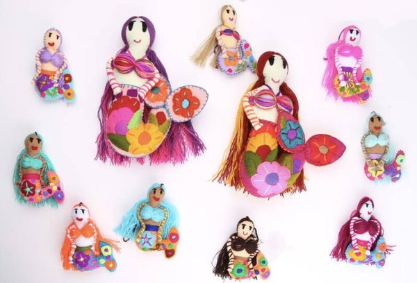 Schattige en vriendelijke kleine zeemeerminnen gemaakt van vilt met grote delicatesse om elke plek op te fleuren waar je het hebt, ze zullen je altijd vergezellen en een glimlach op je gezicht toveren.